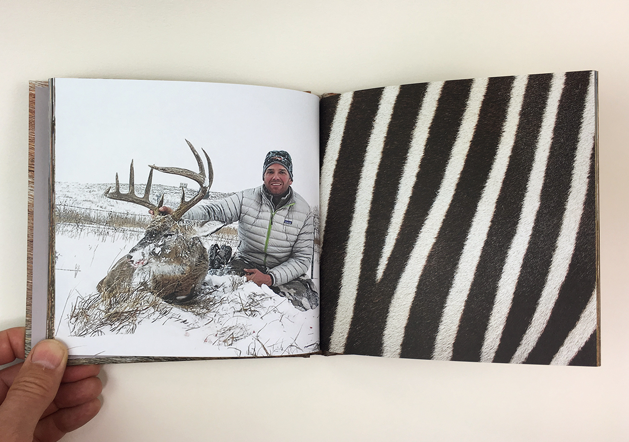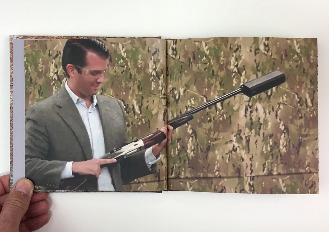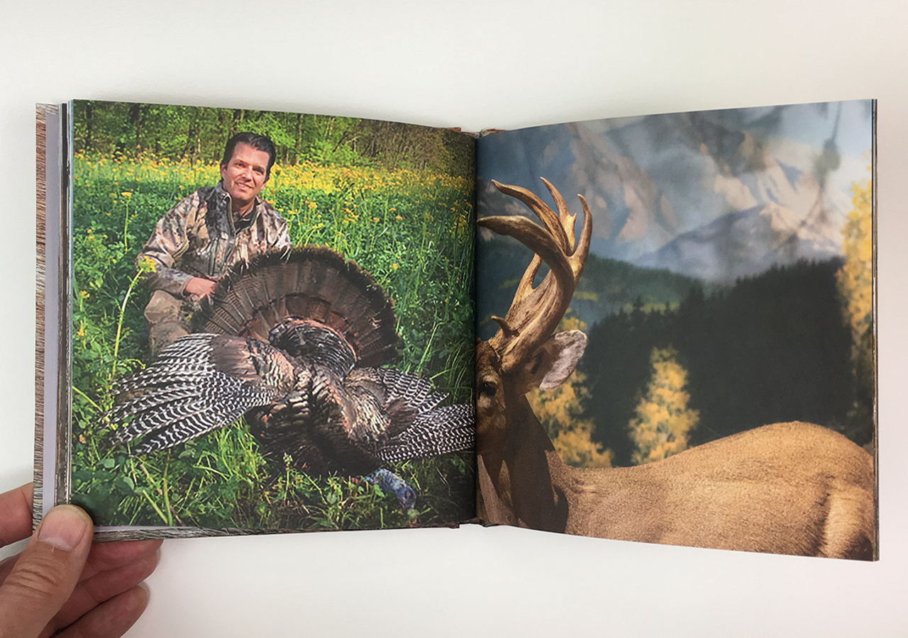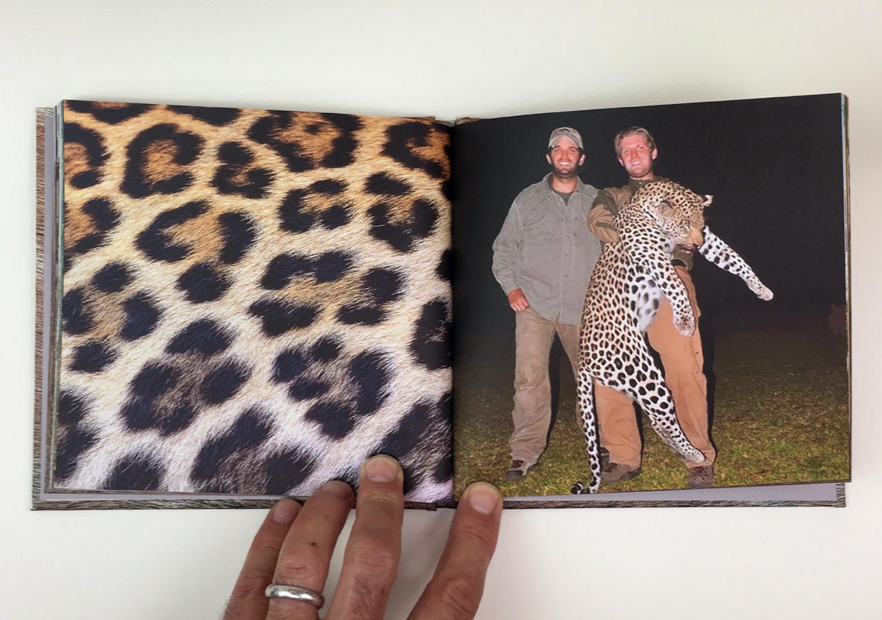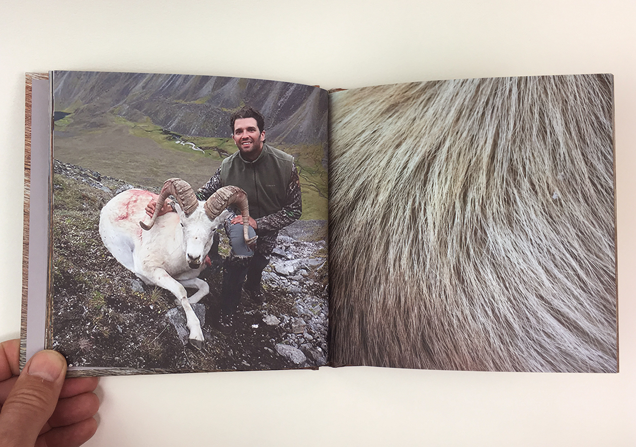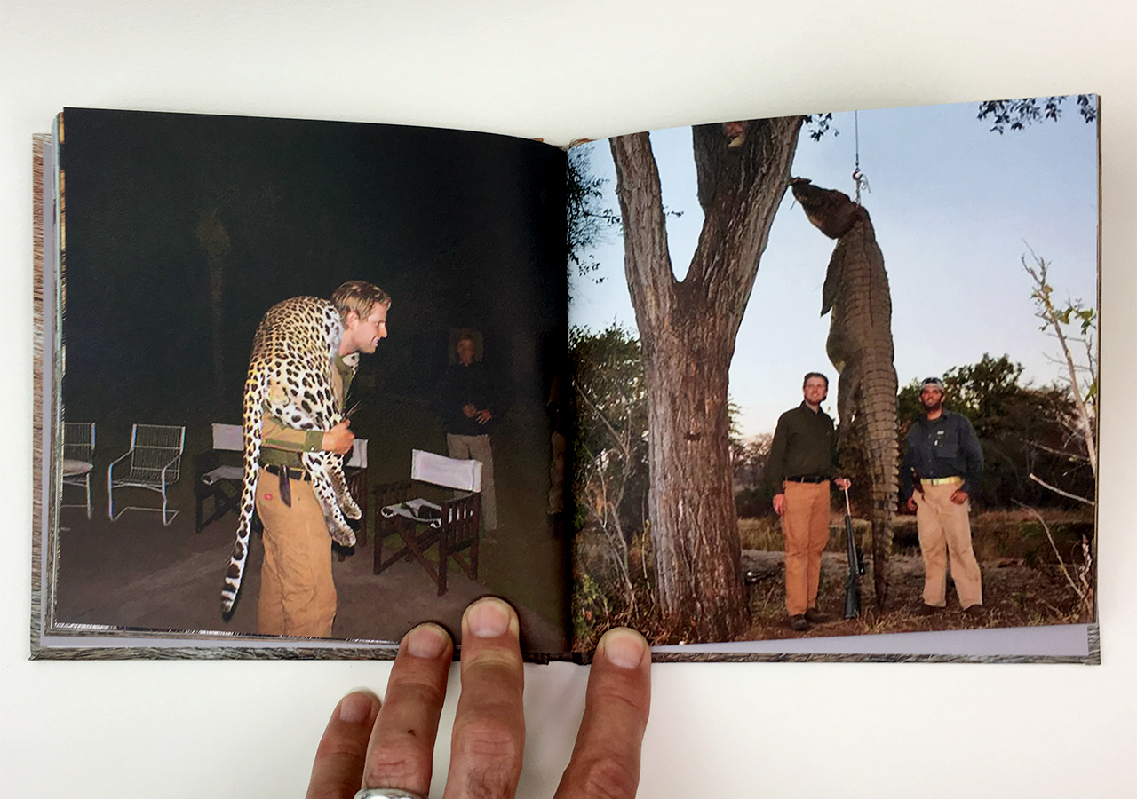 TROPHY is a reaction to the current social and political state of the United States of America and the criminal and immoral administration that currently wields power in our country. Although superficially the subject matter is the cruelty of the Trump sons, their activities are an indicator of the worldview of the morally bankrupt family and administration of Donald J. Trump. The photographs of the animal dioramas and fur details were taken at the International Wildlife Museum in Tucson, AZ. The big-game trophy photographs of Donald J. Trump Jr. and Erik Trump were obtained from the internet, presumably Trump family travel and safari photographs, and have no photographer attribution.