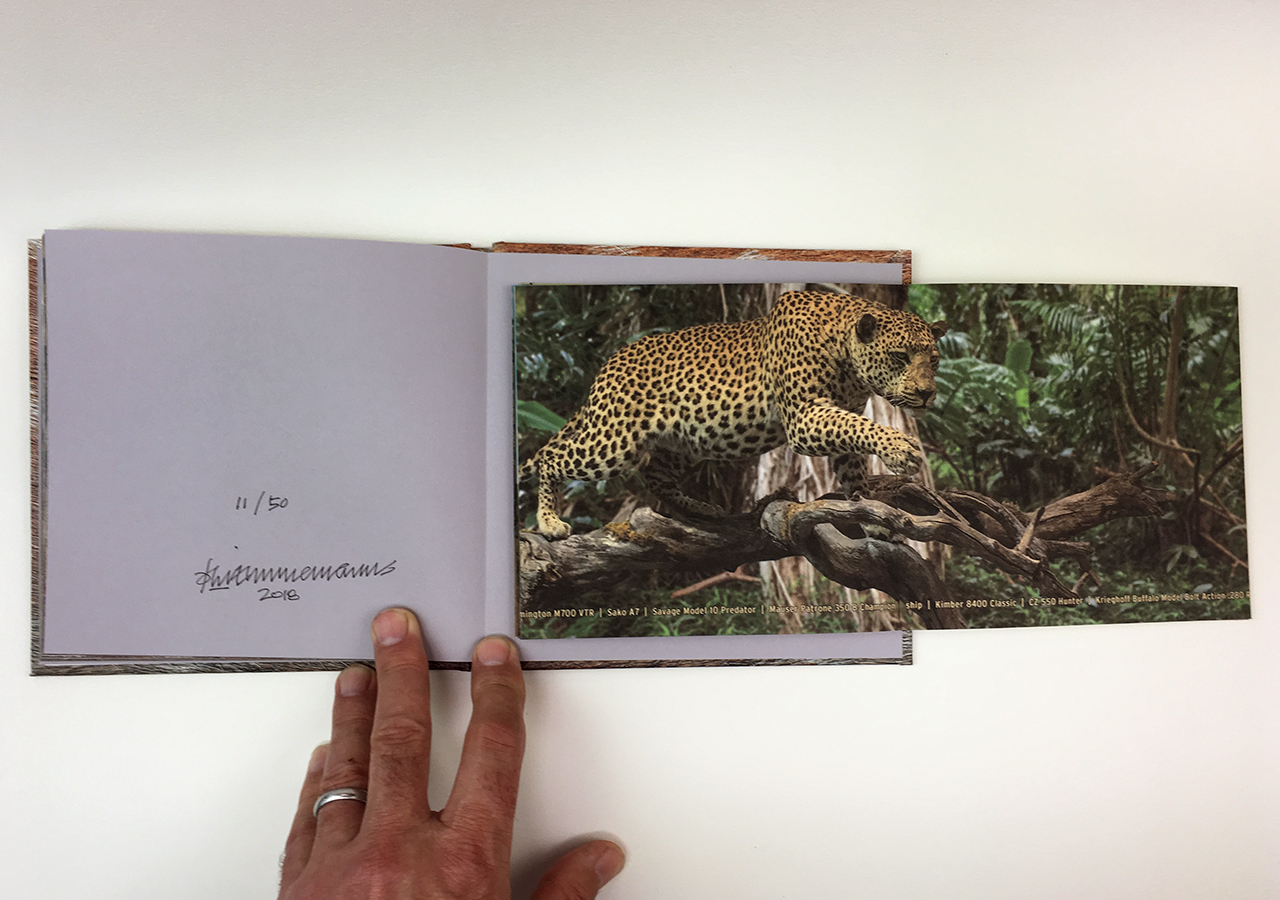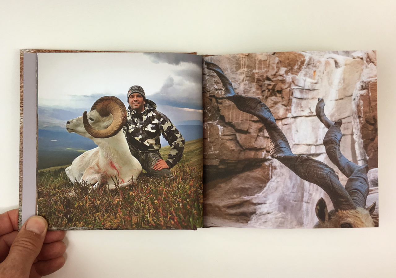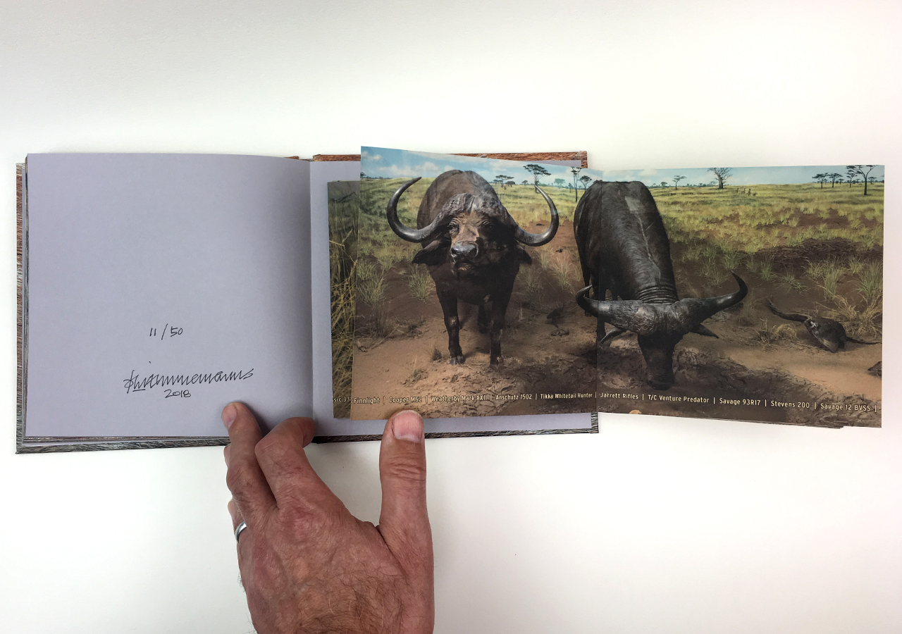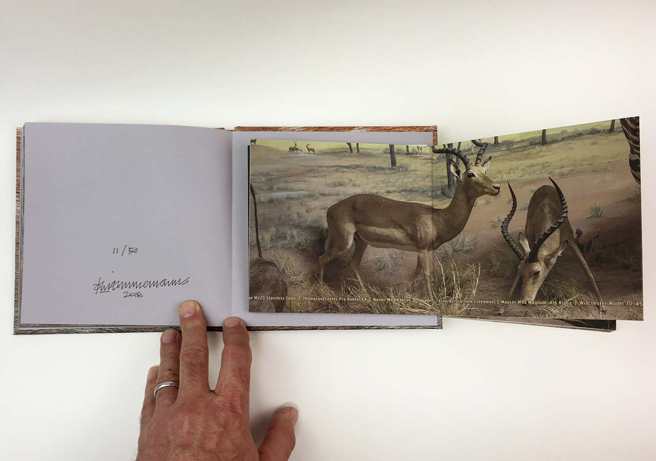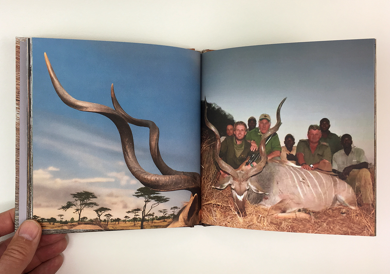 TROPHY is a reaction to the current social and political state of the United States of America and the criminal and immoral administration that currently wields power in our country. Although superficially the subject matter is the cruelty of the Trump sons, their activities are an indicator of the worldview of the morally bankrupt family and administration of Donald J. Trump. The photographs of the animal dioramas and fur details were taken at the International Wildlife Museum in Tucson, AZ. The big-game trophy photographs of Donald J. Trump Jr. and Erik Trump were obtained from the internet, presumably Trump family travel and safari photographs, and have no photographer attribution.